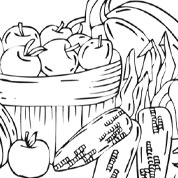 Rysunki do kolorowania - kukurydza, dynie, buraczki, fasolka, jabłka i gruszki, winogrona.